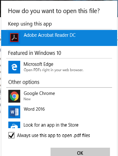 4. Select Adobe Acrobat and check the box that says make this default. Click OK.